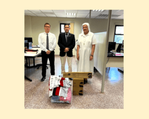 El juez Penal de Garantías, Augusto Acuña Rojas, entregó dos ventiladores de techo y siete mantas a la institución Techo Fraterno “Beata Clara Bosatta” de