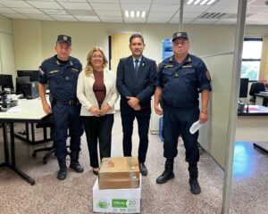 El juez interino del juzgado Penal de Garantías N°3, Augusto Acuña Rojas, ante la actuaria judicial, María Lourdes Colmán Núñez, entregó un paquete de útiles