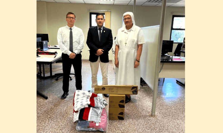 El juez Penal de Garantías, Augusto Acuña Rojas, entregó dos ventiladores de techo y siete mantas a la institución Techo Fraterno “Beata Clara Bosatta” de