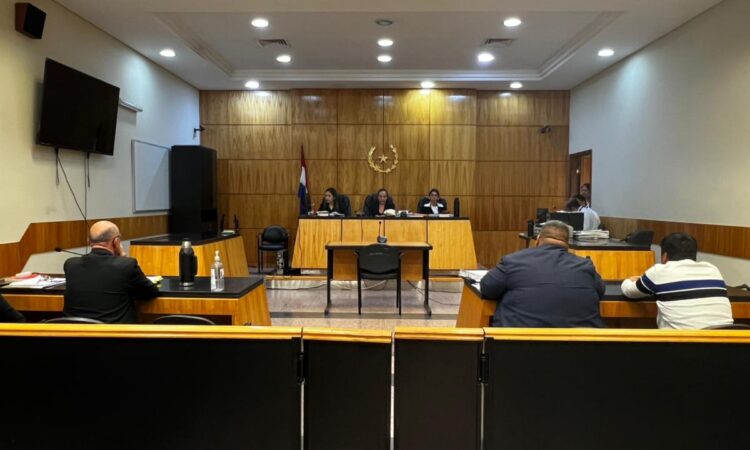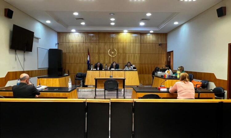 El juez interino del juzgado Penal de Garantías N°3, Augusto Acuña Rojas, ante la actuaria judicial, María Lourdes Colmán Núñez,