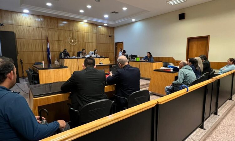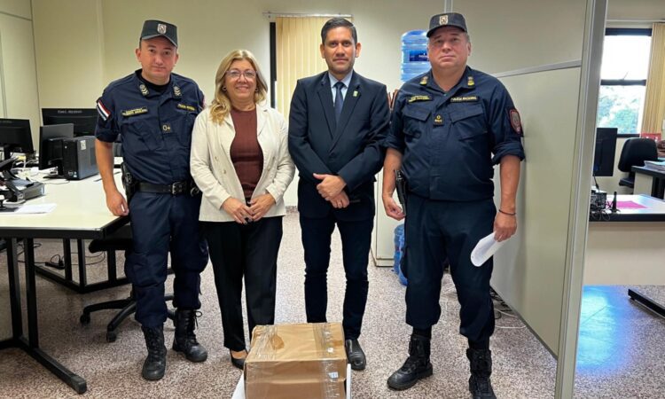 El juez interino del juzgado Penal de Garantías N°3, Augusto Acuña Rojas, ante la actuaria judicial, María Lourdes Colmán Núñez, entregó un paquete de útiles