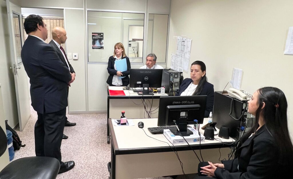 El presidente de la XIII Circunscripción Judicial de Cordillera, Carlos Cabriza Ríos, recibió esta mañana a los encargados de la capacitación sobre la Implementación de Fiscalización en la Plataforma de Gestión en el área Jurisdiccional y Registral, quienes inician hoy esta actividad con la participación del jefe de Ingresos Judiciales de Cordillera, Basilio Zárate Ríos y funcionarios de la referida oficina.