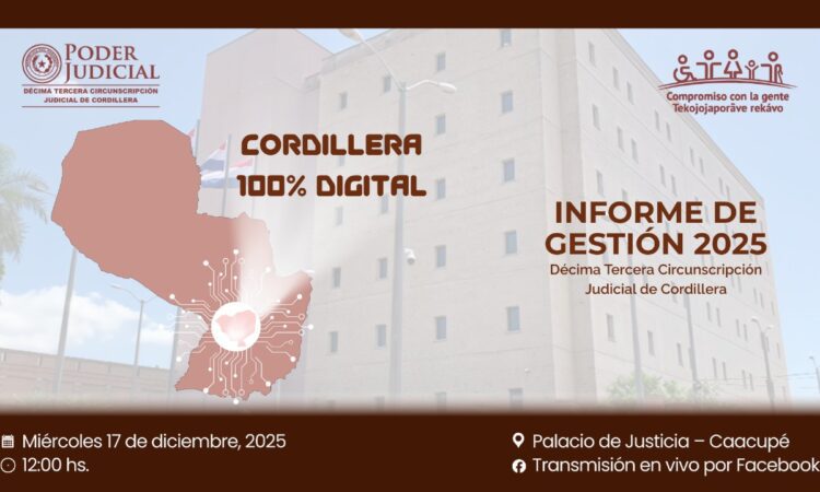 Este informe de gestión presenta un resumen detallado de las actividades y logros de la Décima Tercera Circunscripción Judicial de Cordillera – Poder Judicial, durante el año 2025. Está diseñado en formato libro y audiovisual, para facilitar la lectura y comprensión de la información.