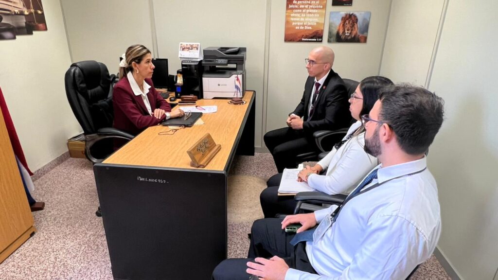 Con los profesionales de la Dirección General de Tecnología de la Información y las Comunicaciones de la Corte Suprema de Justicia DGTIC, fueron recibidos esta mañana por el Presidente Carlos Cabriza, los mismos acompañados de los funcionarios y técnicos del área de informática de la Circunscripción de Cordillera, para las configuraciones y apoyo durante el proceso de seguimiento de la implementación, dieron inicio a las jornadas de capacitación dirigida a magistrados y funcionarios.