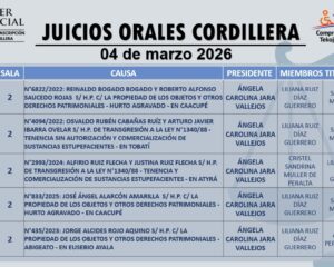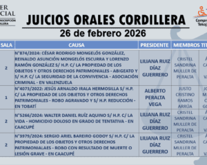 En cumplimiento a las decisiones del Consejo de Superintendencia de la Corte Suprema de Justicia, la Circunscripción Judicial de Cordillera da a conocer el calendario