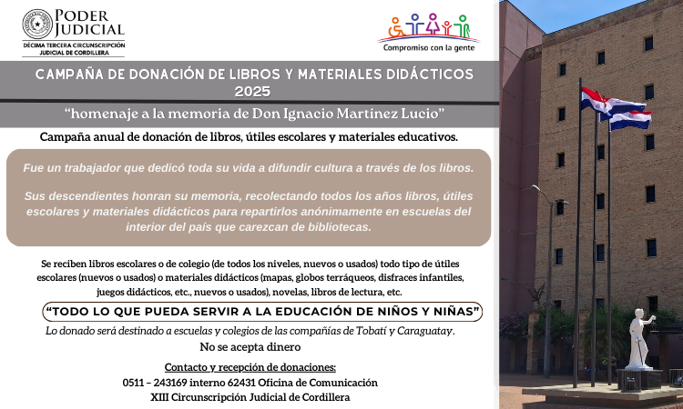 Como cada año, se lanzó en este mes de agosto, la campaña anual de donación de libros, útiles escolares y materiales educativos en homenaje a la memoria de Don Ignacio Martínez Lucio.