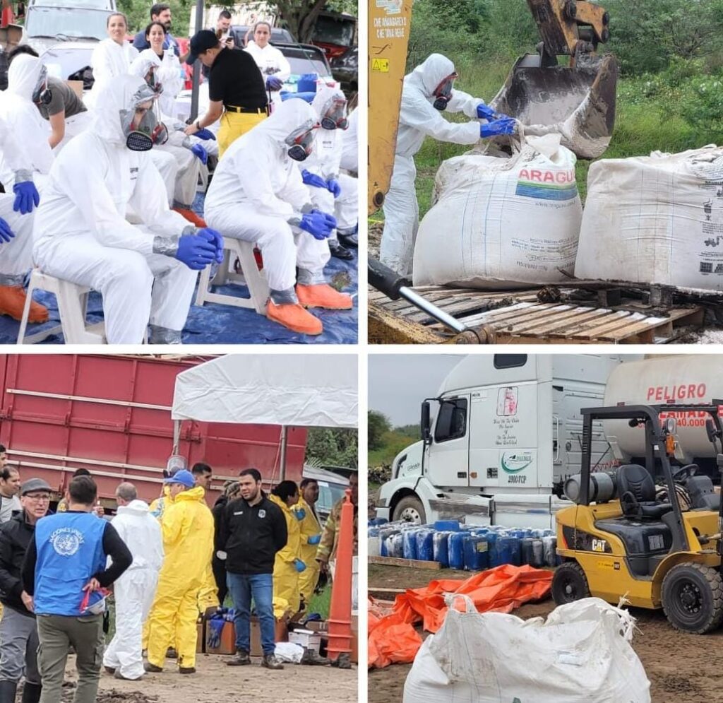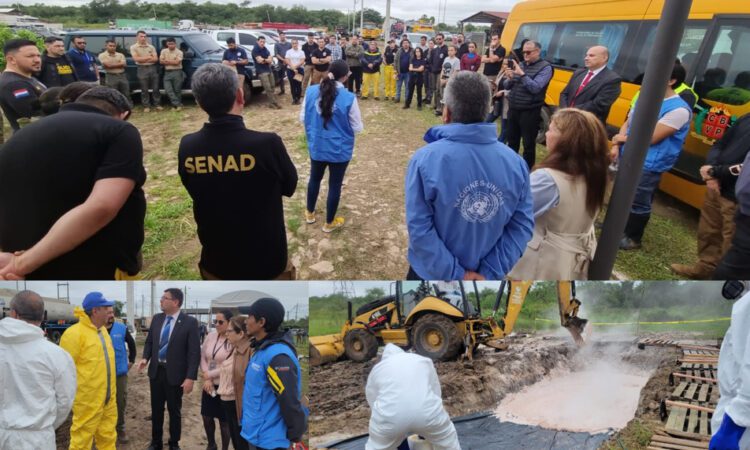 Con la coordinación de la Secretaria Ejecutiva de la Oficina Técnica Penal de la Corte Suprema de Justicia, Dra. Silvana Luraghi, la presencia de la fiscal especializada de lucha contra el narcotráfico y crimen organizado, María Irene Álvarez, la Defensora Pública, Nadia Peralta, funcionarios de la Secretaría Nacional Antidrogas (SENAD), Policía Nacional, Ministerio del Ambiente y Desarrollo Sostenible (MADES), Dirección General de Material Bélico (DIGEMABEL), Cuerpo de Bomberos Voluntarios del Paraguay, entre otras instituciones, el Programa Regional STAND (“Solutions, Training & Advice for Narcotics Disposal”), la Oficina de las Naciones Unidas contra la Droga y el Delito (UNODC), brindó acompañamiento técnico especializado para el cumplimiento de la disposición final de sustancias químicas utilizadas en fabricación de drogas.