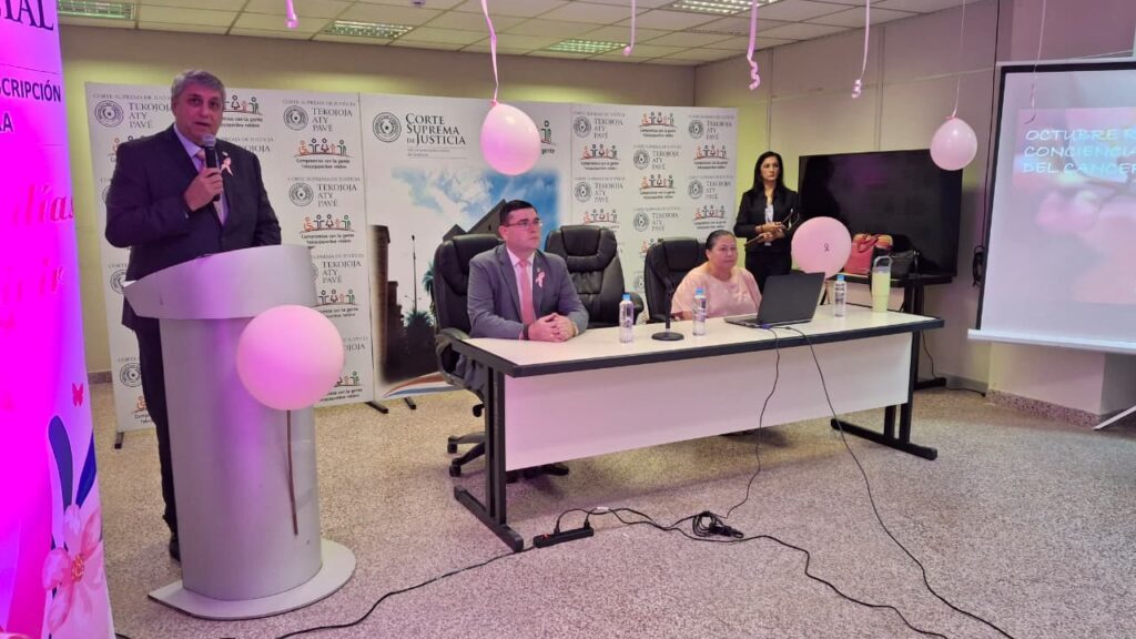 Con la presencia del presidente de la XIII Circunscripción Judicial de Cordillera, Carlos Aníbal Cabriza Ríos, el vicepresidente, Juan Bautista Silva Ucedo, el Director de la Tercera Región Sanitaria de Cordillera, Luis Gómez, la educadora y encargada del Programa de Hipertensión Arterial, Bernardita Galarza, el Director de la UTIC, René Cabrera, la jueza Penal de Garantías, Silvia Carolina Cáceres Riveros, alumnos universitarios de la carrera de enfermería y funcionarios judiciales, se desarrolló una serie de actividades enmarcadas en la Campaña impulsada por la Corte Suprema de Justicia, denominada “Octubre Rosa” Usa tus Días para Vivir.