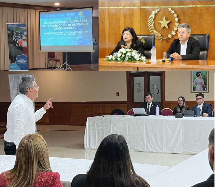 Los representantes del Proyecto Regional STAND de la ONU, Fernando Bernal y William Ibáñez, estuvieron a cargo de las exposiciones, los mismos debatieron con los actores principales del sistema de justicia sobre temas tales como: tratados de fiscalización internacional de drogas; generalidades de la producción de drogas de origen natural y las sustancias químicas utilizadas; problemática de las sustancias químicas incautadas en los depósitos institucionales en Paraguay; y la importancia de la procuración judicial para la disposición final de sustancias químicas y drogas incautadas, entre otros puntos.